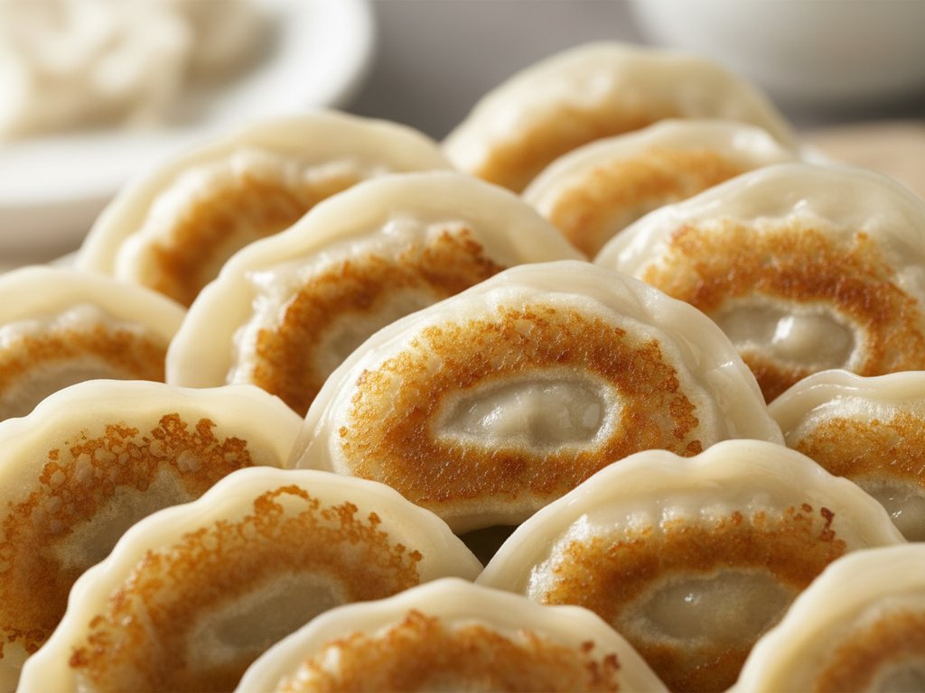 Northern Chinese pan-fried dumplings with a crispy golden bottom and soft steamed top, typically filled with minced pork, cabbage, ginger, and scallions.