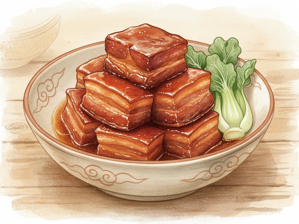 Hangzhou's signature dish of thick-cut pork belly slowly braised in Shaoxing wine, soy sauce, sugar, and ginger until meltingly tender, named after poet Su Dongpo.