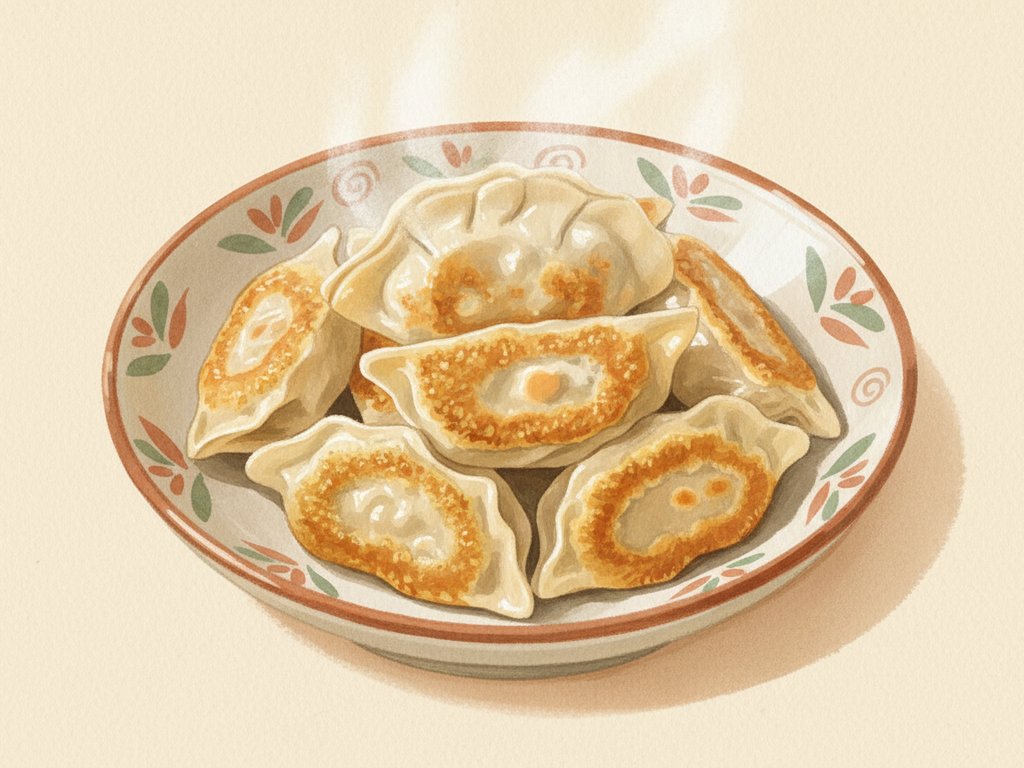 Northern Chinese pan-fried dumplings with a crispy golden bottom and soft steamed top, typically filled with minced pork, cabbage, ginger, and scallions.