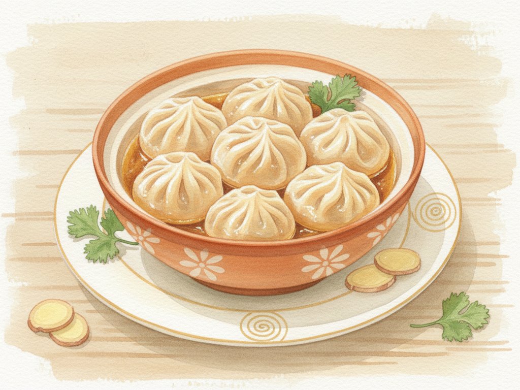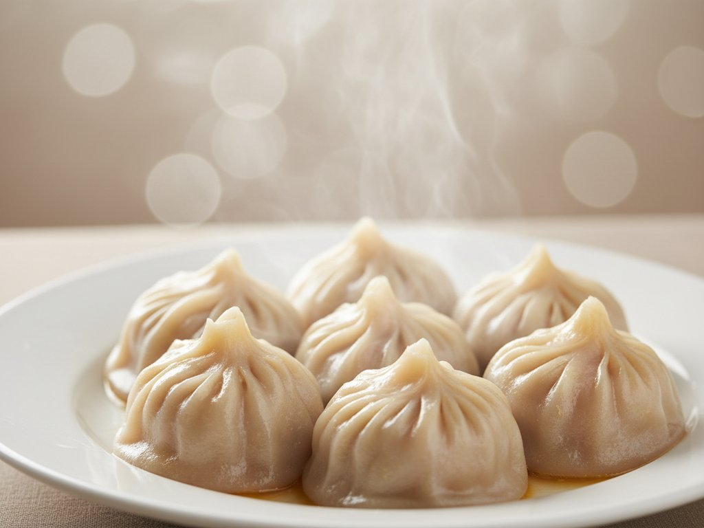 Delicate Shanghai-style steamed soup dumplings with thin wheat wrappers enclosing a pork filling and hot, flavorful broth that forms inside during steaming.