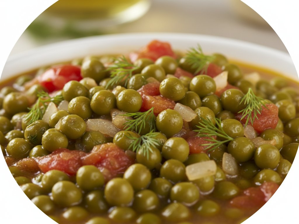 Green peas stewed in olive oil with tomatoes, onions, and fresh dill. A classic Greek comfort food often paired with feta cheese and bread. Some versions include artichokes or potatoes.