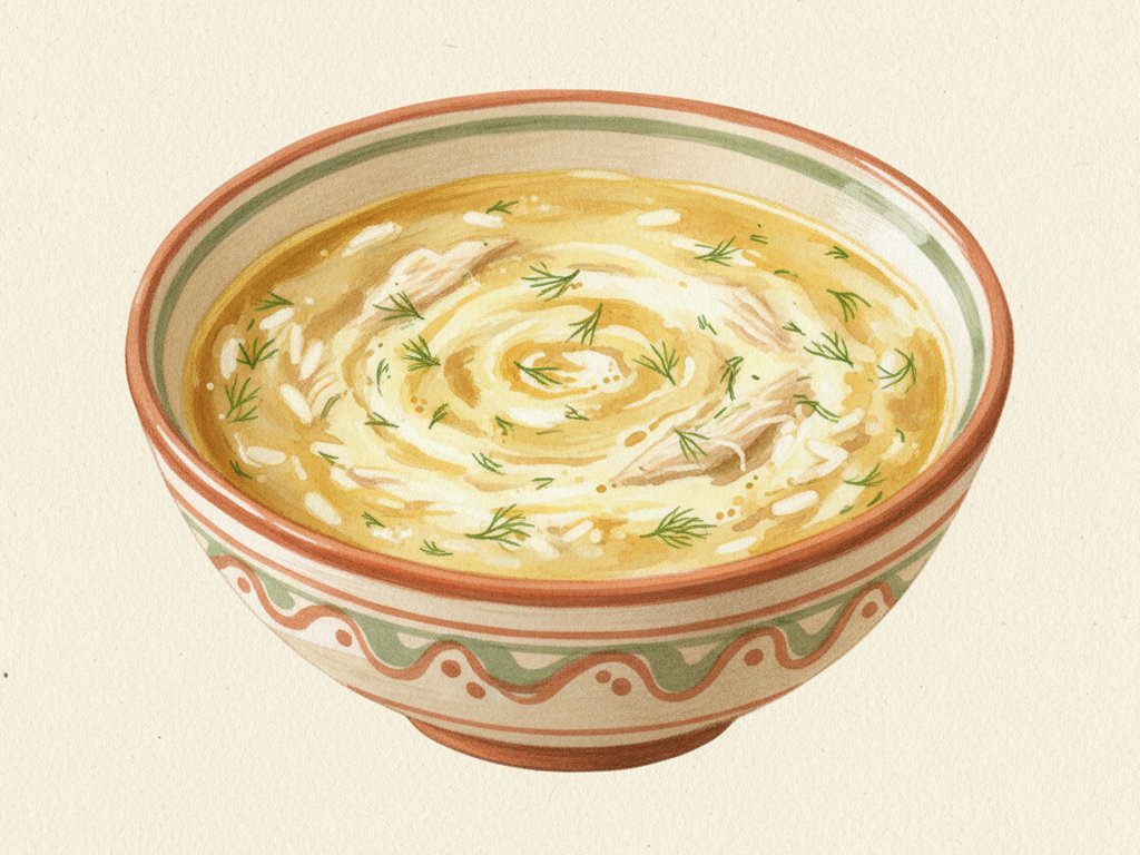 A velvety Greek soup made with chicken broth, rice, and a creamy sauce of whisked eggs and lemon juice. One of Greece's most beloved comfort soups, dating to antiquity.