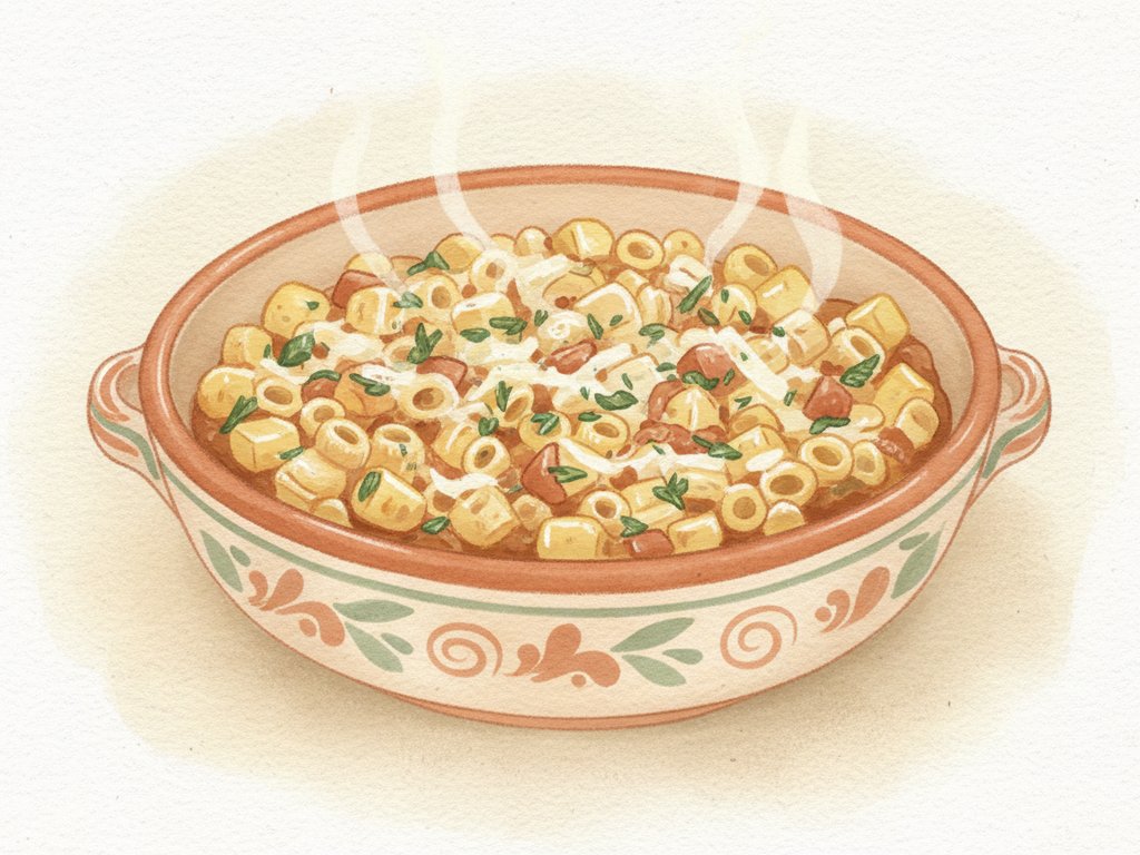 A comforting Italian dish combining pasta and potatoes, often cooked together until creamy.