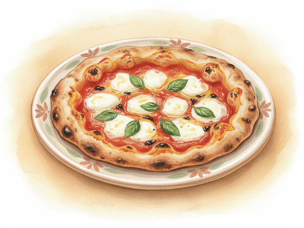 A classic Naples pizza with a soft, airy rim and a thin center, traditionally baked quickly at very high heat.