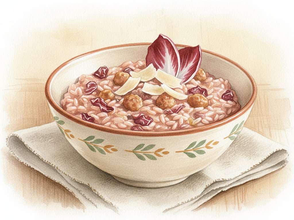 A Veneto risotto associated with Treviso, commonly prepared with radicchio and finished in a creamy style.