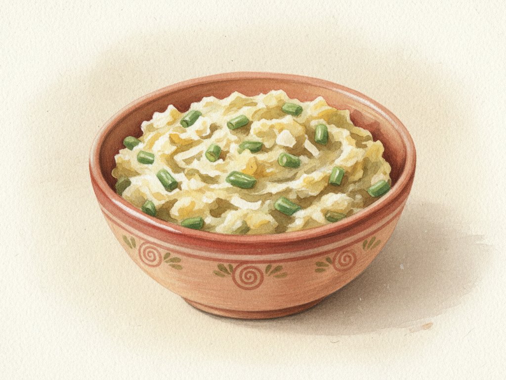 A Lombardy dish of mashed potatoes mixed with green beans, typically enriched with butter and cheese.